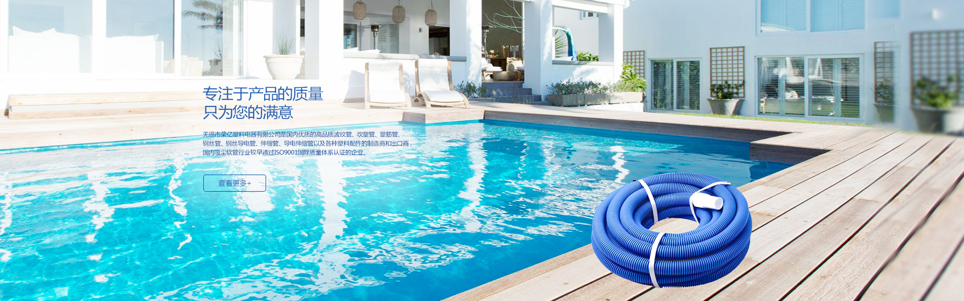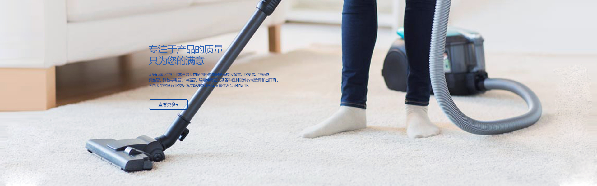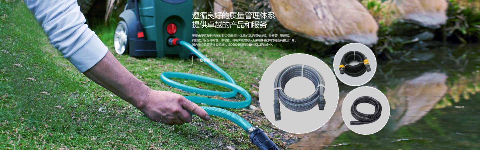 无锡市荣亿塑料电器有限公司是国内优质的高品质波纹管、吹塑管、塑筋管、钢丝管、钢丝导电管、伸缩管、导电伸缩管以及各种塑料配件和型材的制造商和出口商,国内吸尘软管行业较早通过ISO9001国际质量体系认证的企业。多年来,我们一直走在塑料软管行业的前列,客户的满意度作为我们的目标。产品广泛应用于家电业,农业,电力项目等诸多行业。